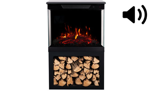 Dank des eingebauten Lautsprechers können Sie nicht nur den schönen Anblick eines brennenden Feuers genießen, sondern auch die authentischen Geräusche von knisterndem Holz.