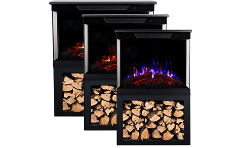 Der Kamin Tower ist mit durchscheinenden Holzscheiten ausgestattet, die den Eindruck von glühendem Holz vermitteln.